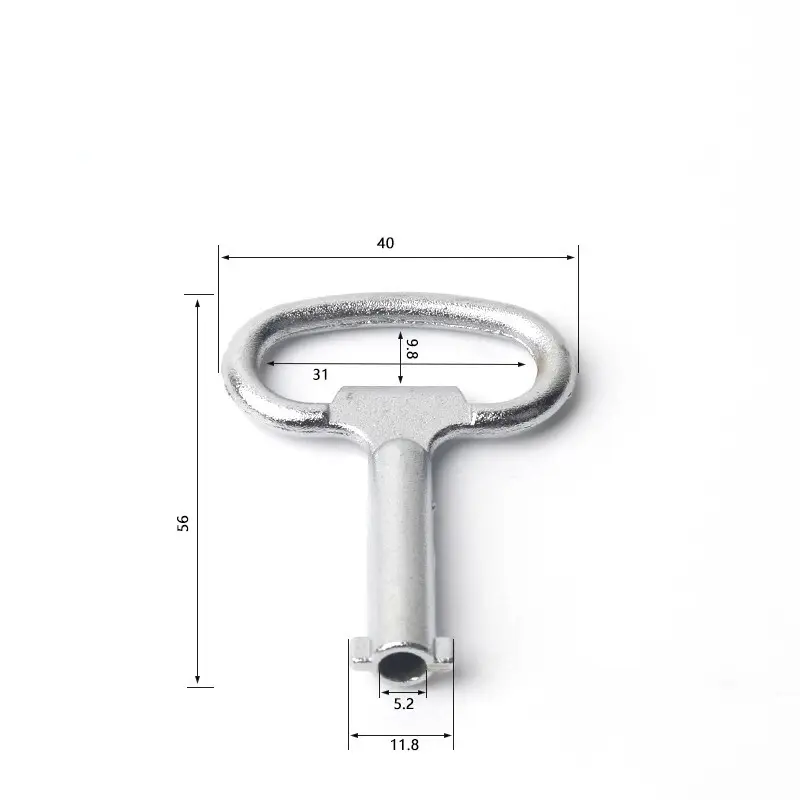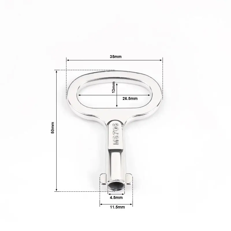 நிக்கல்-பூசப்பட்ட அலுமினிய இரட்டை பிட் விசை: ஒட்டுமொத்த பரிமாணங்கள் 35 × 50 மிமீ, பூட்டு சிலிண்டர் மைய விட்டம் 4.5 மிமீ, பூட்டு சிலிண்டர் மையம் + இரட்டை பற்கள் விட்டம் 11.5 மிமீ.