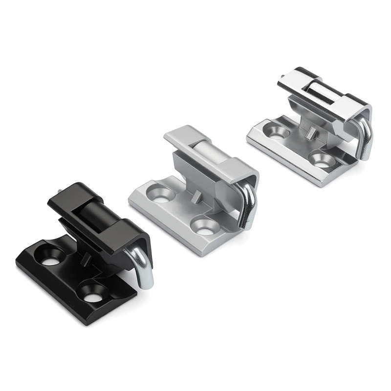 அட்டை வகை செருகுநிரல் மின் அமைச்சரவையின் கீல்கள் அலுமினிய அலாய் அல்லது துத்தநாக அலாய் ஆகியவற்றால் ஆனவை. அலுமினிய அலாய் கருப்பு, பிரகாசமான குரோம் மற்றும் மேட் முடிவுகளில் கிடைக்கிறது, அதே நேரத்தில் துத்தநாக அலாய் கருப்பு மற்றும் மேட் ஒரு தெளிப்பு செயல்முறையின் மூலம் கிடைக்கிறது, இது அதிக இயந்திர வலிமையை வழங்குகிறது.